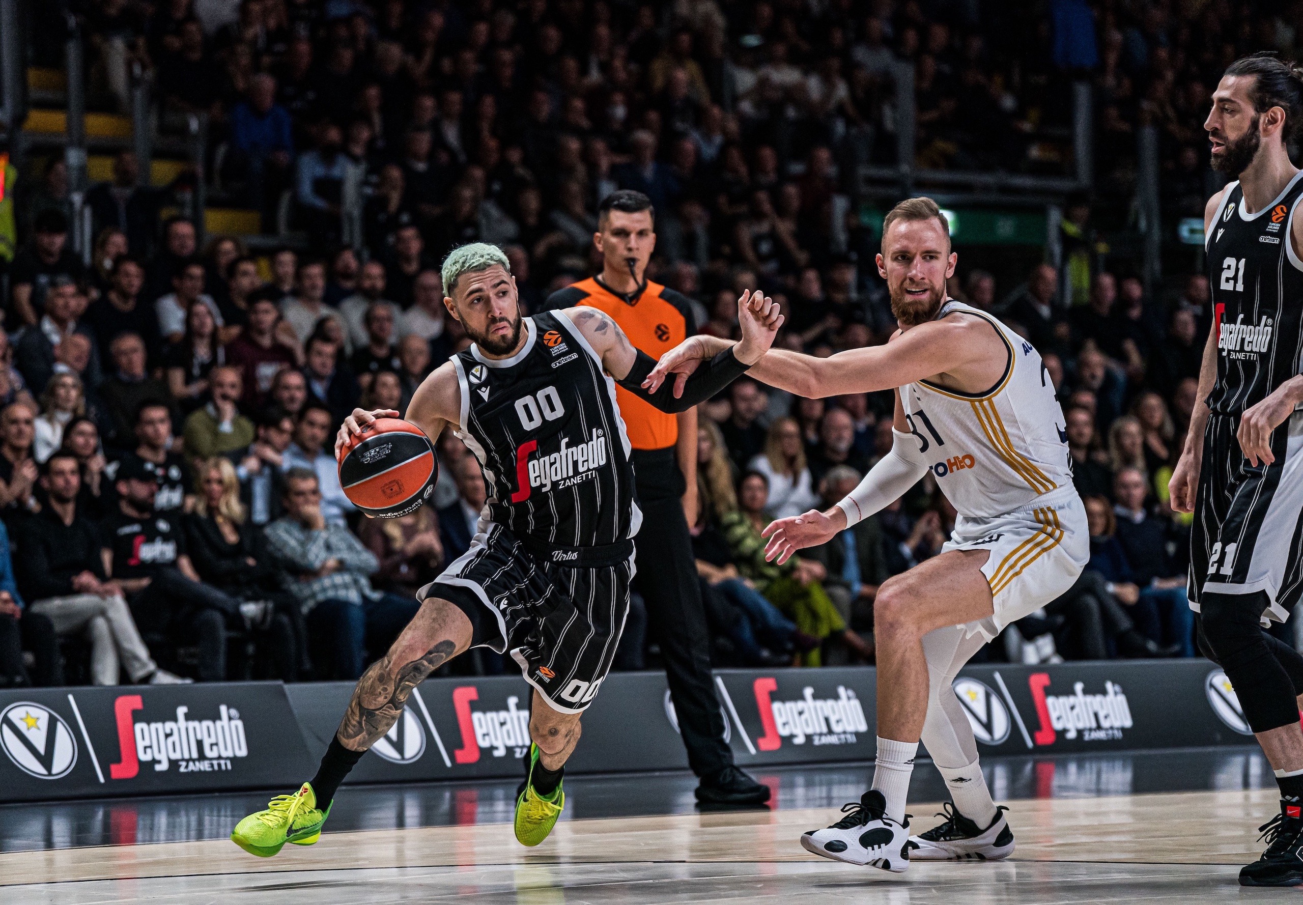 El buen partido de los blancos continuó en el segundo cuarto y amplió la distancia hasta que la fuerza de Cordinier y la dirección de Lundberg recortaron distancias en un duelo entre el francés y Campazzo que hizo que saltaran chispas. Virtus se colocó a 7 pero un triple de Llull puso el +13 para los blancos al descanso.